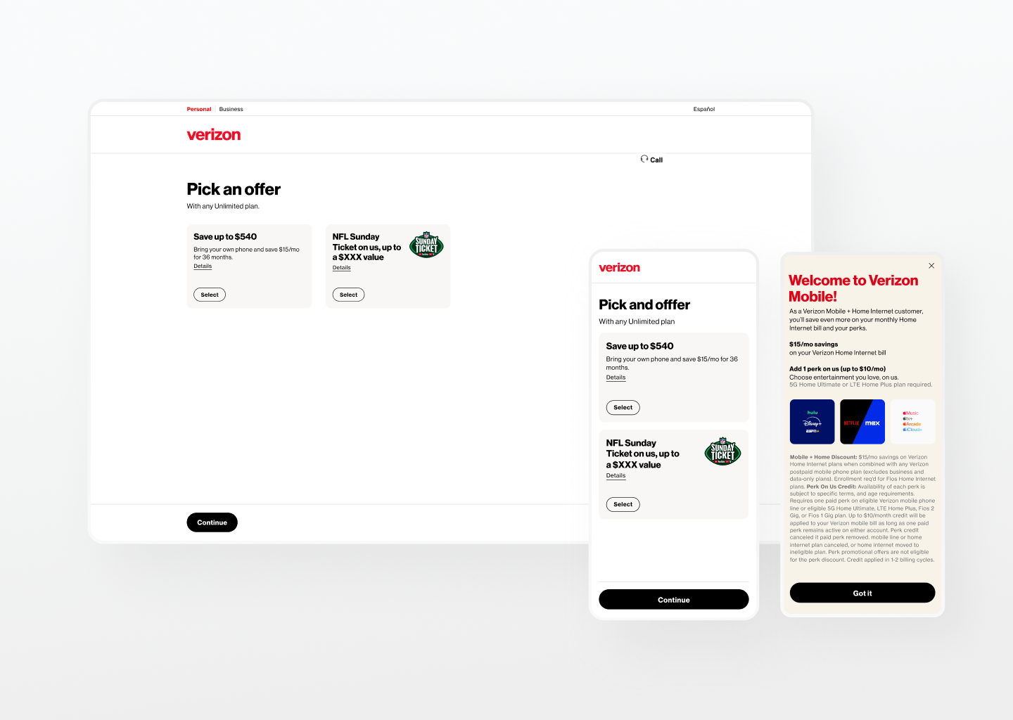 Working as a design partner for BYOD, Mobile + Home Discount, and collaborating on cross-functional experiences and team initiatives.