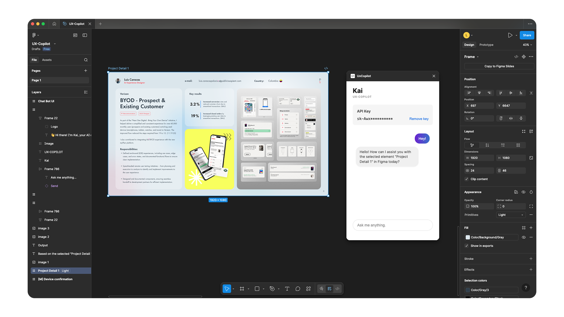 Kai is an AI-powered Figma plugin designed to act as an intelligent co-pilot within the user experience design workflow.
