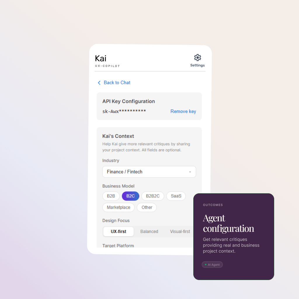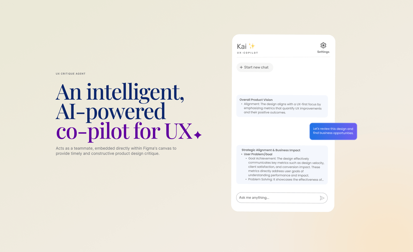 → Enables designers to "Ask Kai anything" for instant, context-aware critique and answers to specific UX questions.